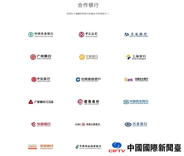 之前Apple Pay支持的15家银行分别是:中国农业银行、中国银行、中信银行、广州银行、上海银行、中国建设银行、中国光大银行、广发银行、兴业银行、招商银行 、中国民生银行、中国工商银行、平安银行、中国邮政储蓄银行和浦发银行。