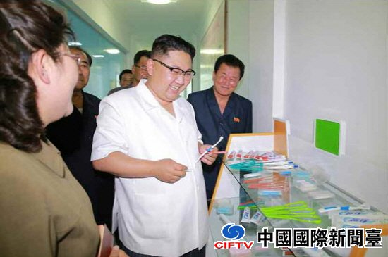 中国国际新闻台(www.ciftv.com)6月20日 据朝中社20日报道,金正恩近日到一处新建的口腔清洁用品厂视察企业生产情况,他认真参观了工厂的生产设备,对其技术实力赞不绝口,还高兴地表示,“又完成一件保证人民健康长寿的事情,我很高兴”。