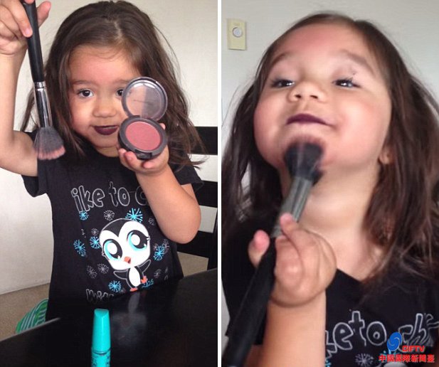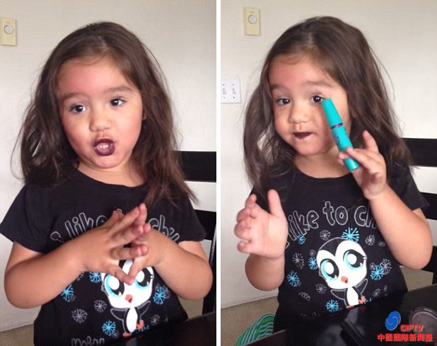 英四岁“萌娃”为变美偷用妈妈化妆品