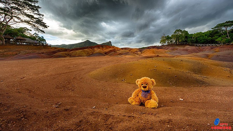 泰迪熊走天下!摄影师携玩偶拍度假美景