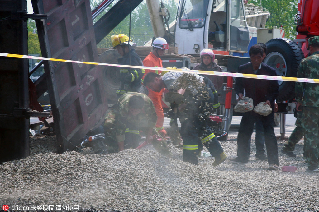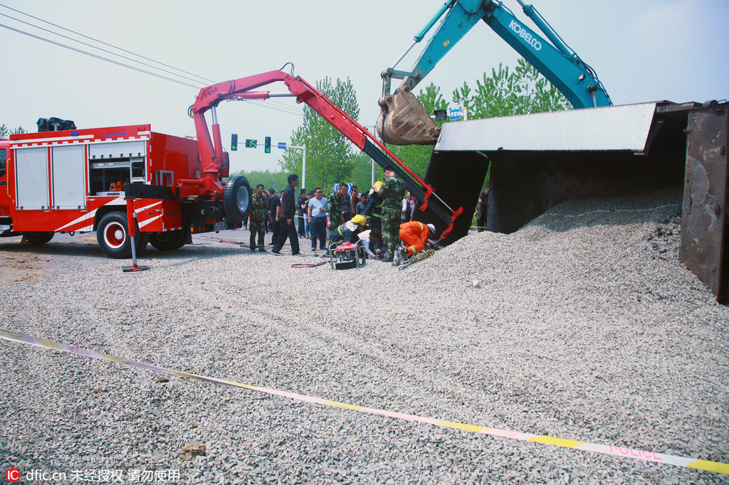 江苏:渣土车侧翻夫妻被埋 10余市民手扒石子救人 查看原图|更多图库