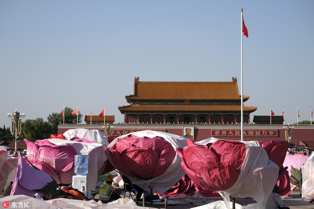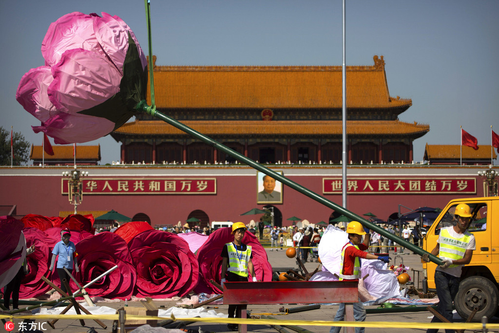 北京天安门广场安装“祝福祖国”巨型花坛 查看原图|更多图库