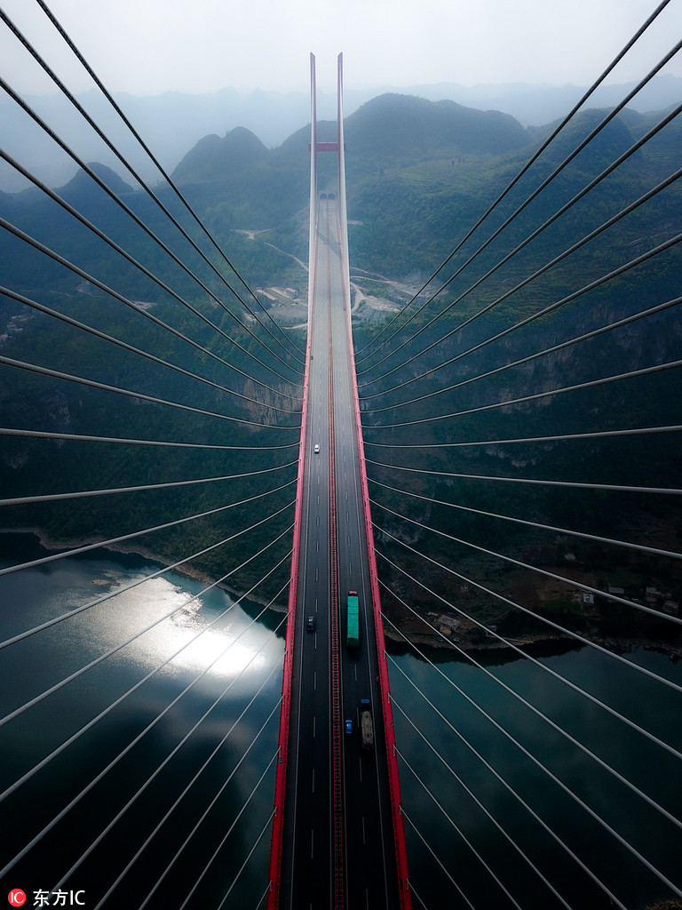 震撼航拍世界跨径最大钢桁梁斜拉桥——鸭池河大桥 查看原图|更多图库