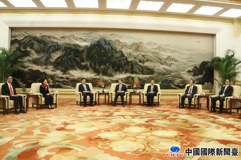 中共中央书记处书记、中央统战部部长尤权、全国政协副主席兼秘书长夏宝龙、国务院港澳事务办公室主任张晓明参加会见。