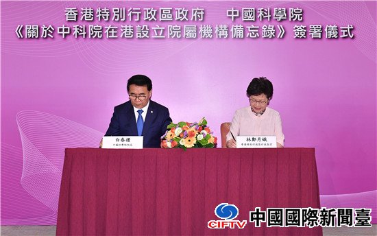 大公文汇全媒体报道:香港特区行政长官林郑月娥今日(8日)在礼宾府与来访的中国科学院(中科院)院长白春礼签署了《香港特别行政区政府 中国科学院 关于中国科学院在香港设立院属机构的备忘录》。林郑月娥在签署仪式上致辞表示,特区政府与中科院签署《备忘录》落实上述安排,是两地科技合作的重要新篇章。她又呼吁香港的两院院士积极参与“大湾区院士联盟”的活动,共同为发展大湾区成为国际科技创新中心作出贡献。