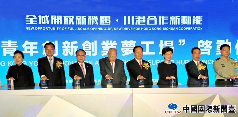 主礼嘉宾启动“蓉港青年创新创业梦工场”项目。(图片来源:中央政府驻港联络办)