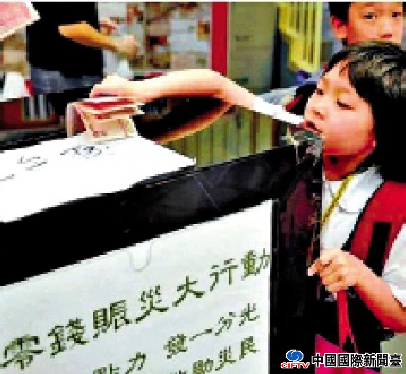 图:港澳人士热心扶贫赈灾,图为香港小童为汶川大地震捐款 /资料图片