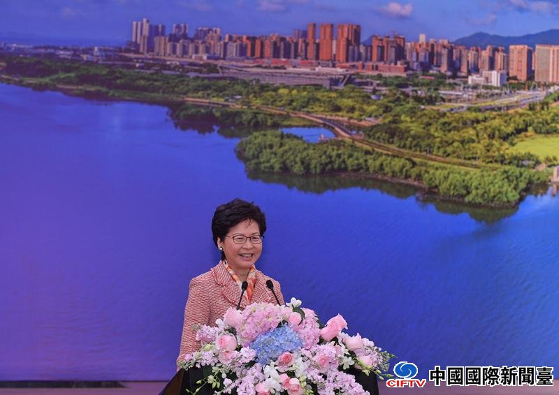 图:林郑月娥表示,改革开放40年来,香港与深圳合作无间,有信心深港合作会朝更深、更广的方向发展\中通社