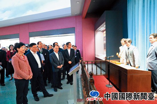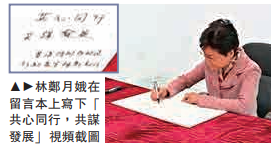 在介绍到改革开放取得的卓越成就和宝贵经验时,林郑月娥和王伟中频密交流。在一块写有“时间就是金钱,效率就是生命”的标语牌前,不少团员驻足拍照留念,团员尤其细心观看有关香港参与改革开放的展板。离开前,林郑月娥在留言本上写下“共心同行,共谋发展”八个字。