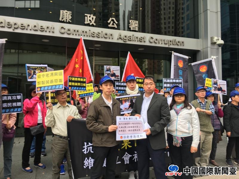 团体“保卫香港运动”昨日到廉政公署总部,抗议《苹果日报》假借新闻自由,在“1125”九龙西补选的过程中为反对派李卓人助选,有违传媒应有公平公正原则。他们又指出,《苹果日报》假借港大民调攻击九龙西补选候选人,涉误导选民,操控选举结果,促请廉署介入调查。”大公报记者 冼国强
