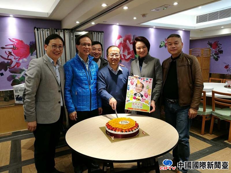 图:柯创盛、李慧琼等人为陈鑑林庆祝生日