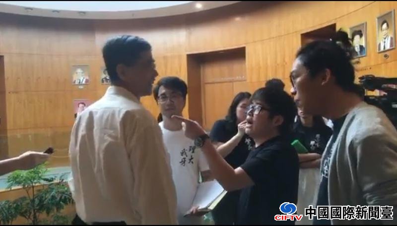 图:何俊谦(黑衣)与一班理大学生早前指骂和禁锢学校高层