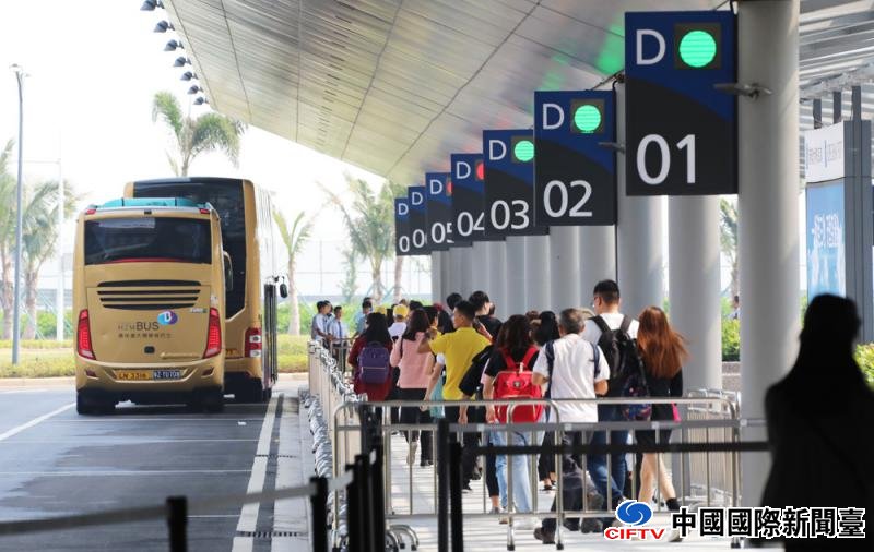 图:在珠海,旅客等乘港珠澳大桥的穿梭巴士前往香港/资料图片