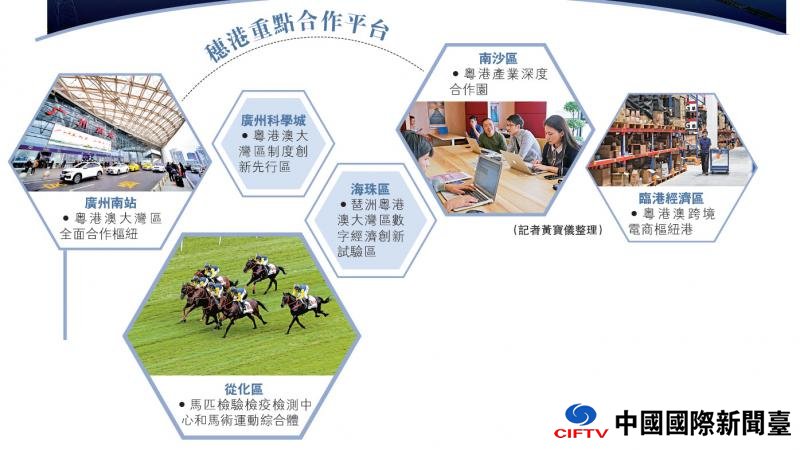 广州还将通过打造一批重点合作平台或区域,加强与香港的合作,包括正积极争取国家支持,将南沙粤港产业深度合作园、中新科学城等纳入了国家中央港澳大湾区建设领导小组会议的储备议题,下一步还计划将穗澳葡语系国家产业合作园纳入其中。同时,在广州科学城建设粤港澳大湾区制度创新先行区;在广州南站建设粤港澳大湾区全面合作枢纽;在海珠区建设琶洲粤港澳大湾区数字经济创新试验区;并要依讬临港经济区,建设粤港澳跨境电商枢纽港;在从化区建立马匹检验检疫检测中心和马术运动综合体,携手香港发展马产业。