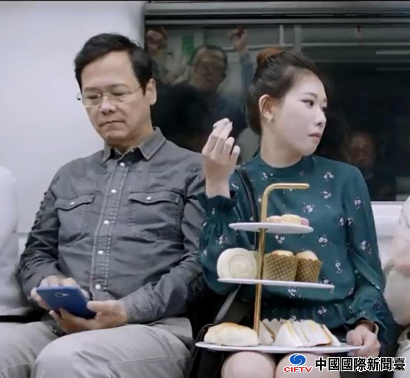 图:遇着旁边乘客在车厢开大餐,多麼无奈