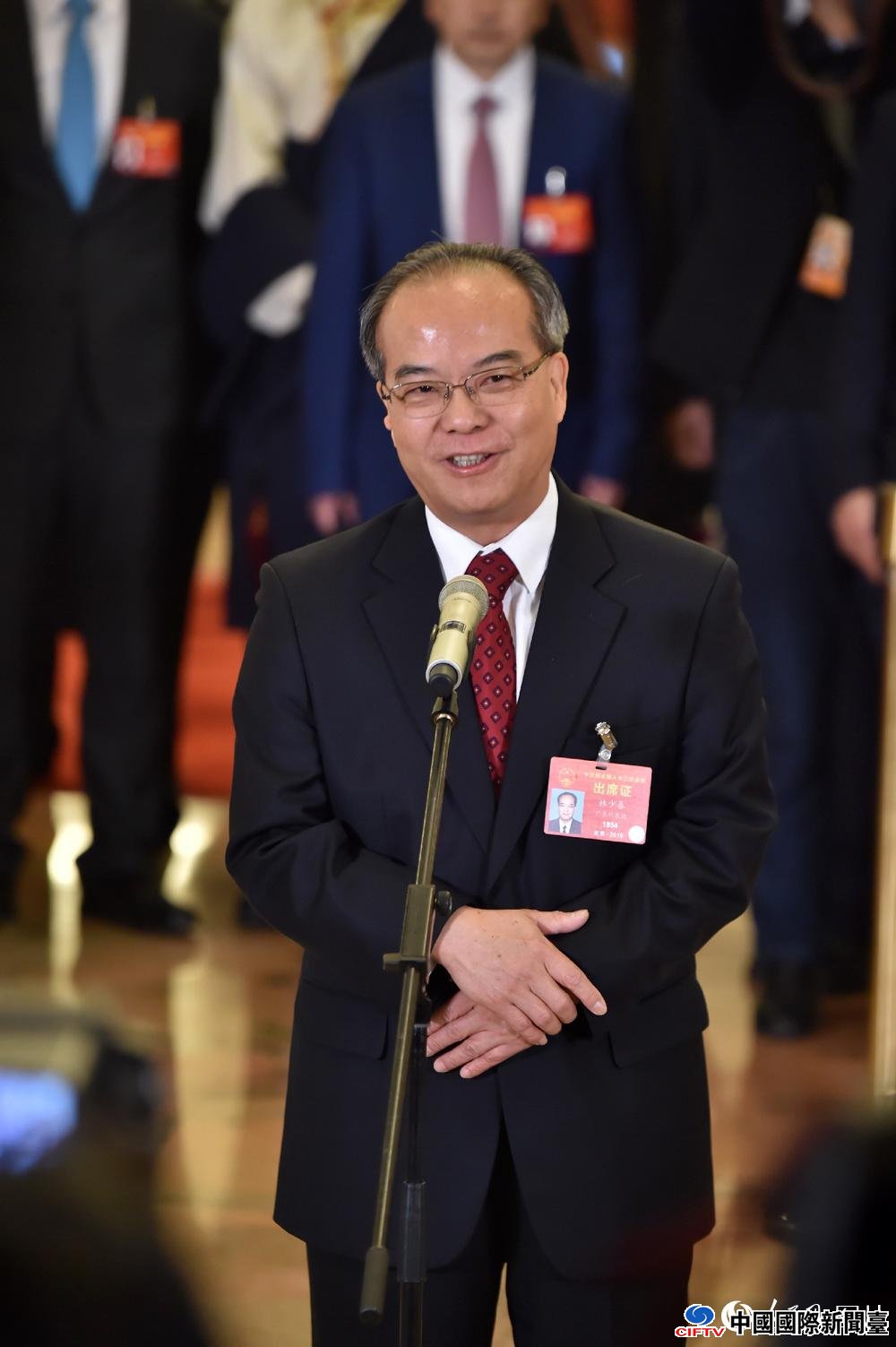 全国人大代表、广东省委常委、常务副省长林少春回答记者提问。人民网记者 翁奇羽 摄