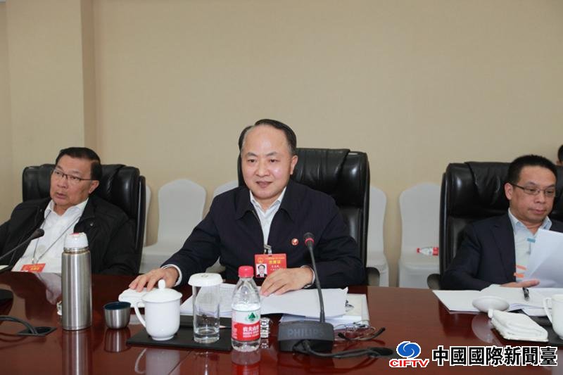 图:中联办主任王志民在十三届全国人大二次会议香港代表团审议政府工作报告时发言