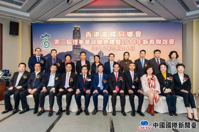 图:香港富阳同乡会举办“第二届理事会就职典礼暨2019年新春联谊会”,主礼嘉宾合照