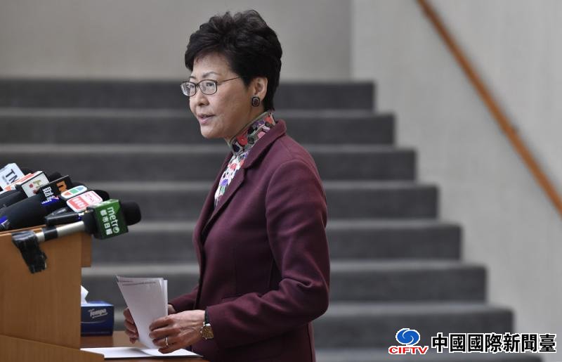 图:林郑月娥表示,将前往日本东京出席由粤港澳三地政府联合主办的大湾区推介会\中通社