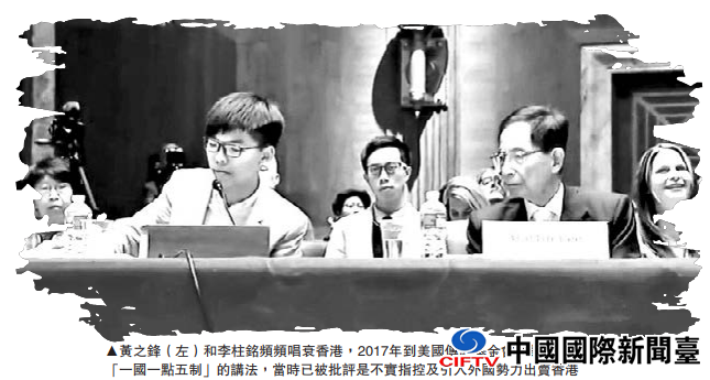 资料显示,黄之锋和民主党创党主席、同样热衷唱衰香港的李柱铭2017年到美国传统基金会演说时,曾提出“一国一点五制”的讲法,当时已被批评是不实指控及引入外国势力出卖香港。
