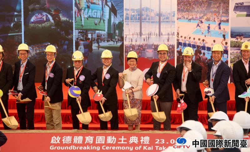 图:斥资319亿港元兴建的启德体育园举行动土典礼,行政长官林郑月娥、民政事务局局长刘江华等出席
