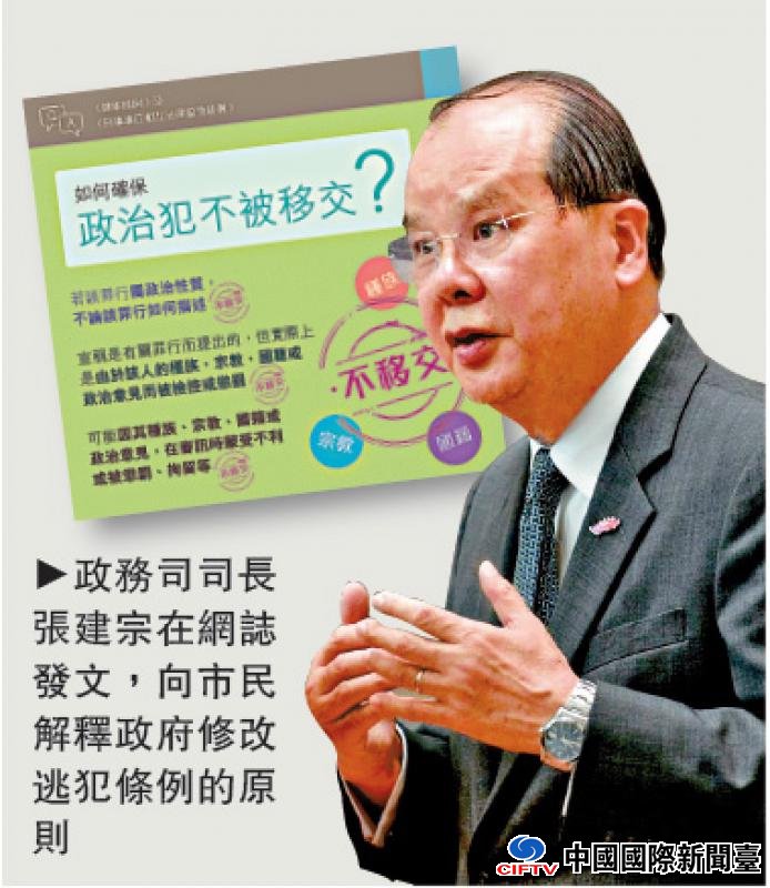 圖:政務司司長張建宗在網誌發文,向市民解釋政府修改逃犯條例的原則