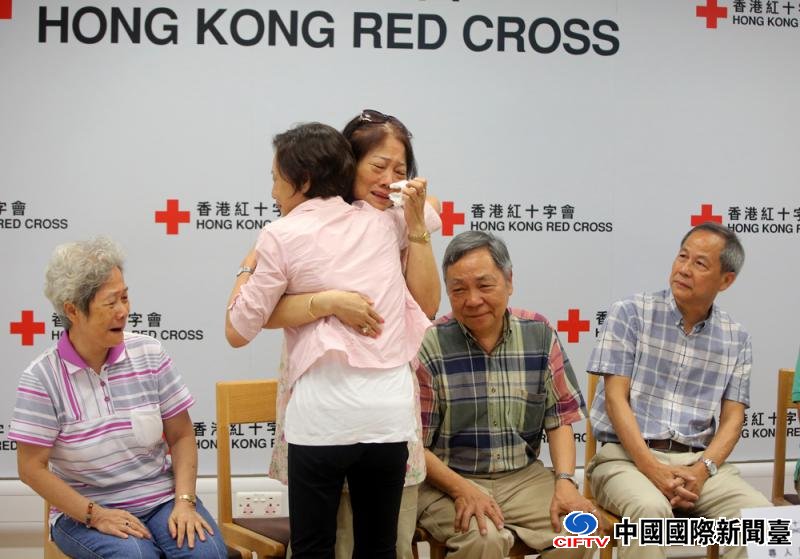 冼玉翎在红十字会的帮助下,成功寻得六兄姊,昨日首次见面相认,双方相拥而泣\大公报记者麦润田摄