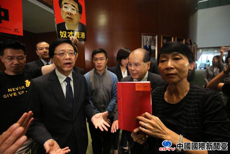 图:反对派又再上演闹剧,频频围堵阻挠政务司司长张建宗及保安局局长李家超\大公报记者摄