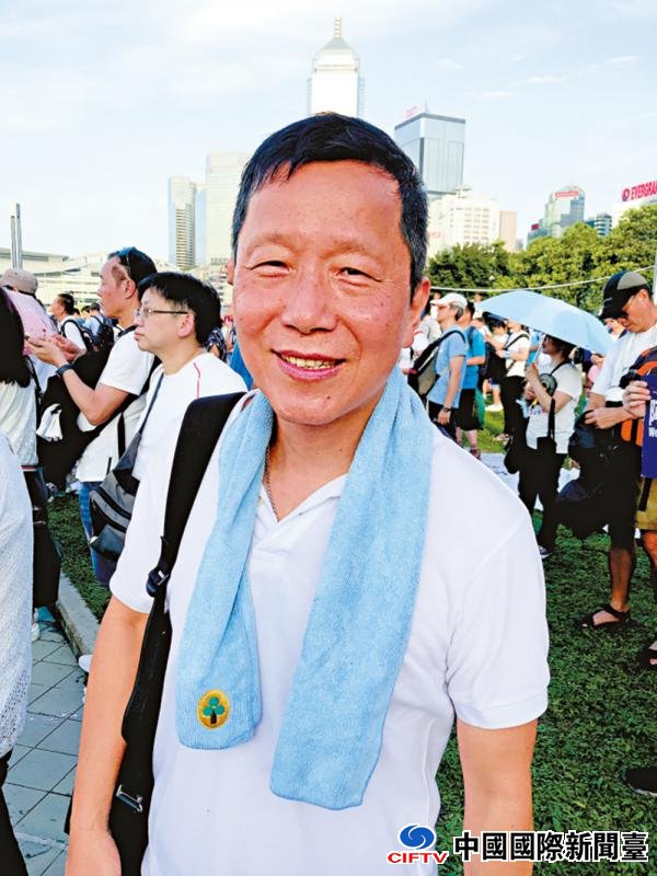 與太太穿上白衣參加集會,他向《大公報》記者表示,從新聞片段看到社會近日發生的事情,感到非常痛心,「警察在示威現場工作十分辛苦,面對暴力衝擊只是正當防衛,但就被指控,作為普通市民,希望站出來表達支持警察的心聲。」