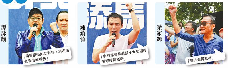【大公報訊】撐警大會昨日星光熠熠,出席者包括譚詠麟、鍾鎮濤、梁家輝、高志森、陳欣健等多個演藝界名人齊齊現身。