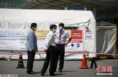 当地时间2015年6月2日,韩国首尔,韩国MERS疫情目前已造成2人死亡,疫情在全国范围内拉响警报,医院设立隔离区,民众出行戴口罩(资料图)。