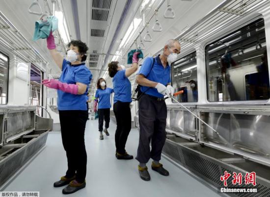 当地时间2015年6月4日,韩国,MERS病毒蔓延,韩国对公共交通工具进行消毒。