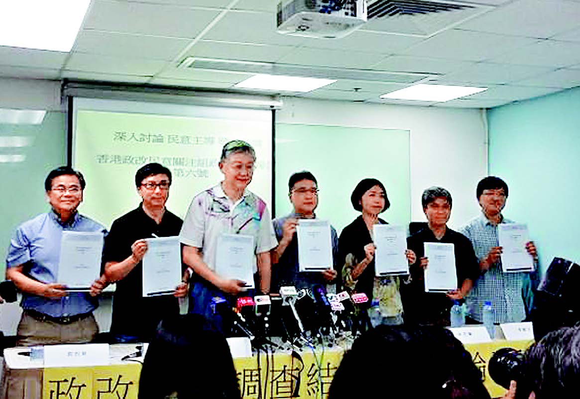 一旦全国人大常委会承诺2017年以后可改变普选办法,在“宁愿立法会不通过方案”组别当中,62%愿意转通过,微跌0.9个百分点;若然“公司票转为个人票”,66.2%转通过,跌7.9个百分点;若加入“白票守尾门”,67.1%通过,跌3.5个百分点。