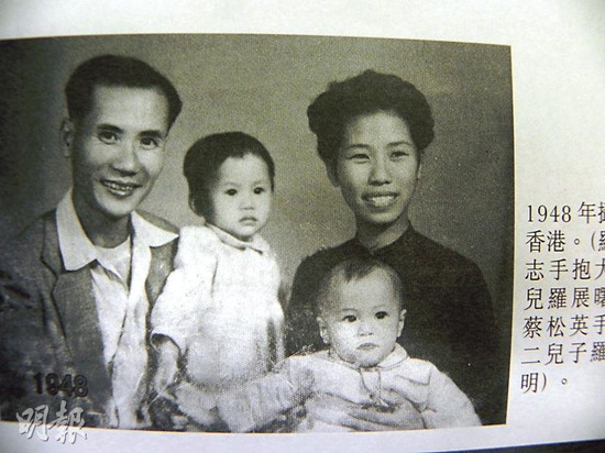 东江纵队老战士蔡松英婆婆的丈夫罗广志曾经参加文化名人秘密大营救。图为1948年罗广志(左一)及蔡松英(右一),与大女及二子在香港合照。图自香港《明报》