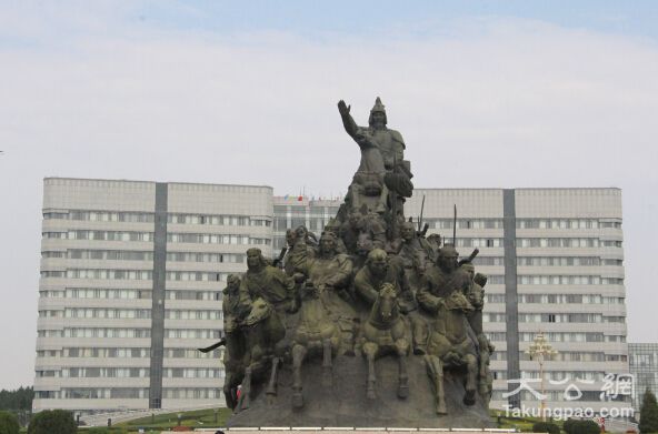 图:鄂尔多斯康巴什新区成吉思汗广场上的雕塑/大公报记者曾庆业摄