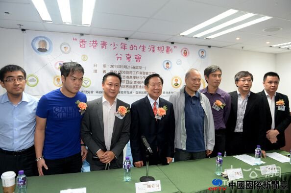 图:陈佐洱(左三)和嘉宾出席全国港澳研究会主办的“香港青少年的生涯规划”分享会大公报记者林良坚摄