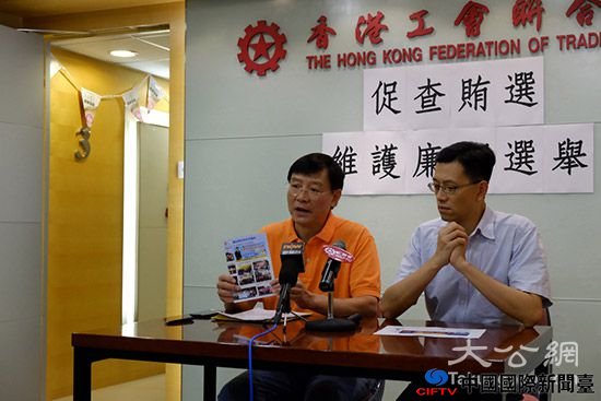 中国国际新闻台(www.ciftv.com)据:大公网10月19日讯(记者龚学鸣)《大公报》日前收到市民爆料,揭露小西湾选区候选人、柴湾区街坊福利会理事长朱日安涉贿选。工联会昨日召开记者会,同为小西湾选区参选人的工联会立法会议员王国兴表示,朱日安的传单印有派发免费饭盒的服务,而且朱在报名后在当区派发,涉嫌违反选举条例,要求执法部门处理。对于朱日安于Facebook专页声称自己是工联会职员,工联会理事长吴秋北亦澄清:“朱先生完全不是工联会的职员。”