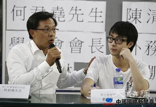 图:岭大学生会日前举行论坛,有学生以粗口指骂校董何君尧(左),何君尧亦不满学生会长刘振琳(右)人身攻击其太太/大公报记者何嘉骏摄