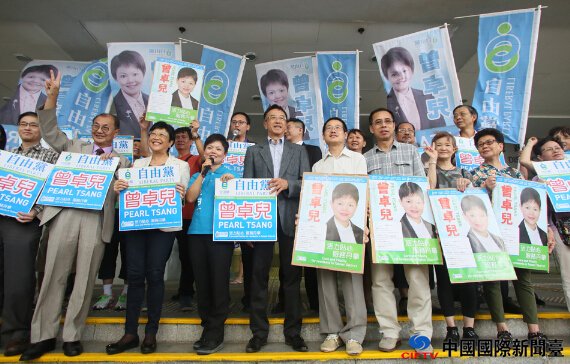 图:曾卓儿(左四)是自由党参加区选唯一女将/资料图片