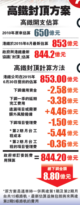 高铁844亿封顶港铁包底 政府申请加拨196亿