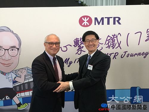 图:港铁主席钱果丰卸任在即,行政总裁梁国权(右)与他握手言谢。钱果丰称,梁国权当年见工由他面试,亦是他一手栽培成为CEO/大公报记者陈卓康摄