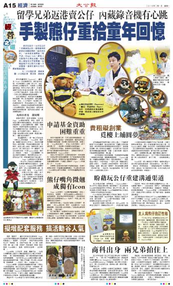 留学兄弟返港卖公仔 手制熊仔重拾童年回忆