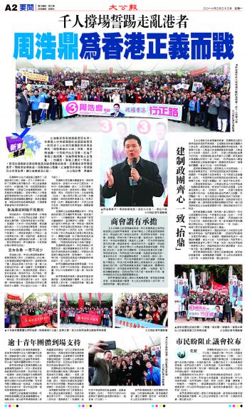 千人撑场誓踢走乱港者 周浩鼎为香港正义而战