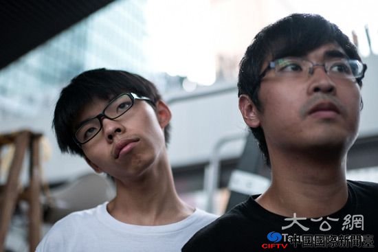 占中”期间,学联秘书长周永康(右)和黄之锋鼓吹暴力冲击,霸占道路,令民生大受打击\资料图