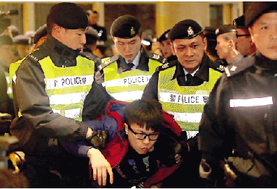 图:警方昨晚清场,将占领者抬离立法会大楼/大公报记者麦润田摄