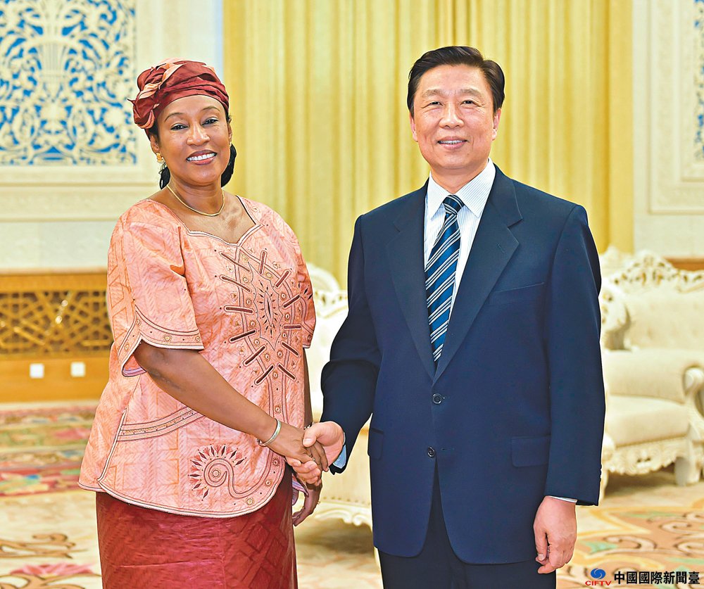 图:中国国家副主席李源潮17日在北京人民大会堂会见冈比亚外长盖伊/新华社