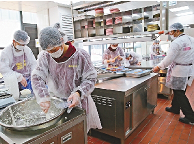 图:十七日,上海一网络订餐公司领到了首张针对网络订餐品牌的食品经营许可证。图为该公司员工在厨房配餐/新华社