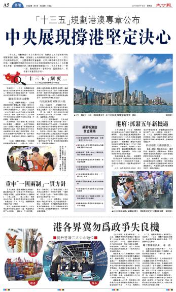 “十三五”港澳专章公布 中央展现撑港坚定决心