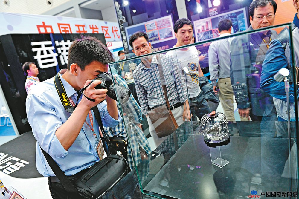图:2015年西安丝绸之路国际博览上,香港展位吸引了大量展商参观/资料图片