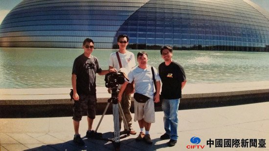 图:曾宪国(右二)与同事到北京工作 受访者供图